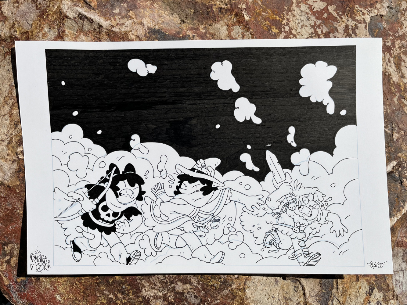 Original artwork from the comic The Wizerd! and The Potion of Dreams by Michael Sweater & Rachel Dukes. Finished, inked artwork on 11" x 17" bristol board (with archival inks). Signed by both artists.