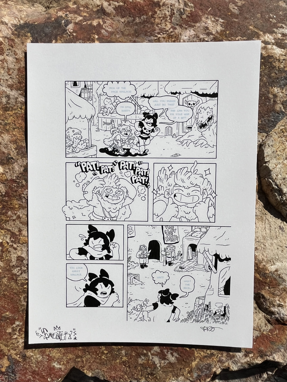 Original artwork from the comic The Wizerd! and The Potion of Dreams by Michael Sweater & Rachel Dukes. Finished, inked artwork on 9" x 12" bristol board (with archival inks). Signed by both artists.